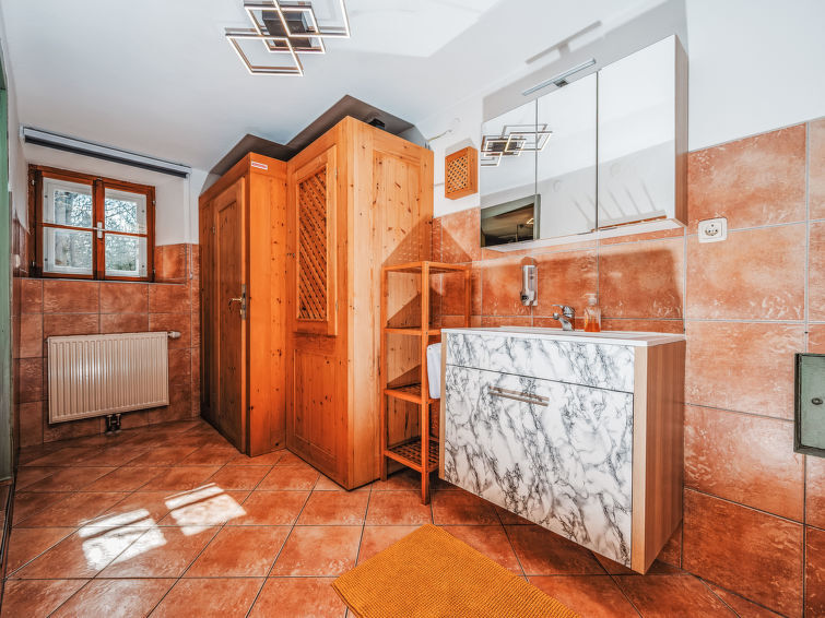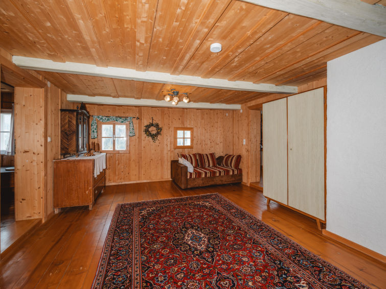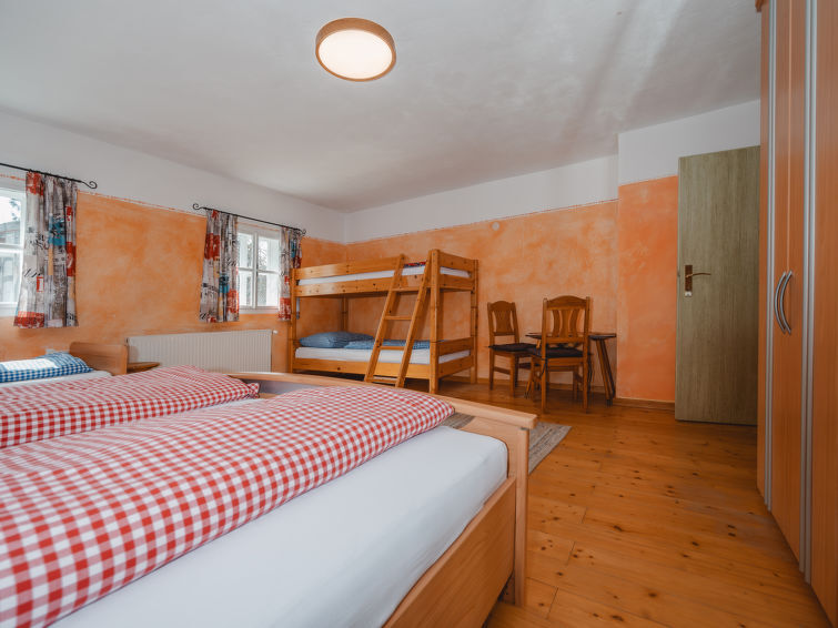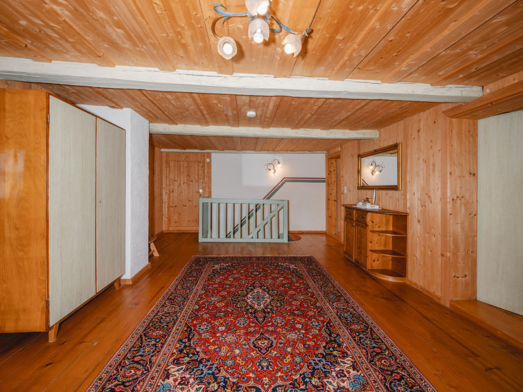 Ancienne ferme 6 pièces 150 m2 sur 2 niveaux. Aménagement rustique et plaisant: entrée. Petit séjour avec poêle suédois et TV (satellite) (écran plat). Grande cuisine/séjour (four, lave-vaisselle, 4 plaques vitrocéramiques, micro-ondes, cafetière électrique) avec table pour les repas et poêle à bois. 2 douches, 2 WC séparés. À l'étage supérieur: 1 chambre avec 2 lits et 1 lit double. 1 chambre double. 1 chambre avec 1 grand-lit (160 cm). 1 grande chambre avec 1 lit et 1 x 2 lits superposés, 1 lit double. Sol en bois. Réduit. Très belle vue sur les montagnes. A disposition: Internet (Connexion WIFI, gratuit). Veuillez noter: détecteur de fumée. Grande salle de bains commune avec 2 douches, 2 vasques et 2 toilettes, située au rez-de-chaussée. 50201-000225-2020