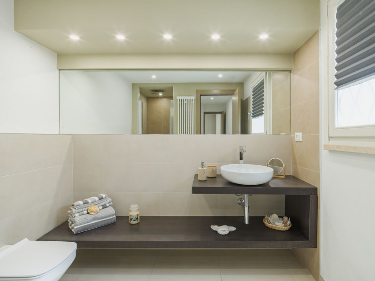 Maison jumelée 4 pièces 160 m2 sur 3 niveaux. Aménagement agréable et plaisant: séjour ouvert avec écran plat. Cuisine ouverte (lave-vaisselle, 4 feux, grille-pain, bouilloire électrique, micro-ondes, cafetière électrique) avec table pour les repas. Sortie sur la terrasse. Douche/bidet/WC. Chauffage au gaz. Possibilité de chauffage uniquement du 01.11. au 15.04. À l'étage supérieur: (escalier sans rampe) 1 chambre double. Sortie sur le balcon. 1 chambre avec 2 lits. Sortie sur le balcon. Douche/bidet/WC. Sous le toit: 1 chambre double avec Dressing avec douche/bidet/WC et air-conditionné. Terrasse 20 m2, couverte. Meubles de terrasse, barbecue, chaises longues (2). A disposition: lave-linge, coffre-fort, fer à repasser, moustiquaire, chaise haute pour enfant, lit bébé jusqu'à 2 ans, sèche-cheveux. Internet (Connexion WIFI). Place de parking (2 Voitures). Veuillez noter: maison non-fumeur. Détecteur de fumée, extincteur. Climatisation uniquement dans la chambre mansardée. IT046018C2S4ATBLK7