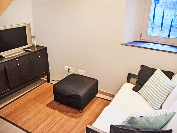"Le Ti' Bauduin", maisonette 2-kamers 40 m2. Afgeschuinde daken, doelmatig ingericht: woon-/eetkamer met open haard, eethoek, Digitale TV, internationale TV-zenders, Flatscreen TV en stereo-installatie. Keuken (4 keramische glas kookplaten, broodrooster, waterkoker, elektrische koffiemachine, combimagnetron). Douche, aparte WC. Houtverwarming. Bovenverdieping: 1 open groot kamer met afgeschuinde daken met 1 2-pers bed (1 x 160 cm, lengte 200 cm). Uitgang naar het terras. Terras. Terrasmeubelen, barbecue. Ter beschikking: haardroger. Internet (Internet (WiFi), extra). Rookmelders.
