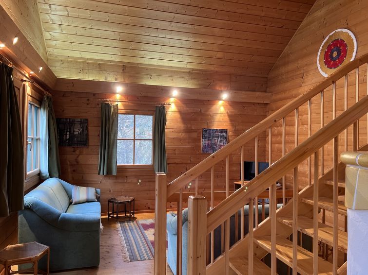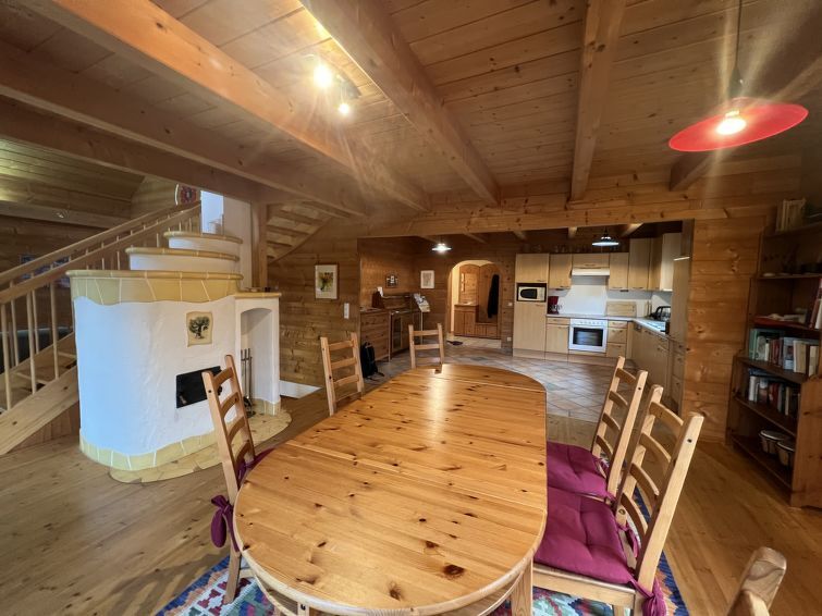 4-kamers cottage 130 m2 op 3 verdiepingen. Licht, comfortabel en met veel hout ingericht: groot hal. Open eetkamer. Uitgang naar het terras. Open woonkamer met 1 2-pers divanbed, Sat-TV, Flatscreen TV en tegelkachel. Uitgang naar de tuin. 1 2-pers. kamer. Open galerij. Uitgang naar het balkon. Open keuken (oven, afwasmachine, 4 keramische glas kookplaten, magnetron, elektrische koffiemachine). Bad/douche, aparte WC, dubbele wastafels met hoekbad. Vloerverwarming. Bovenverdieping: 1 groot 2-pers. kamer met dakraam. Houten vloeren. Balkon 10 m2, groot terras 15 m2. Terrasmeubelen, barbecue. Mooi uitzicht op de tuin, het landschap en de plaats. Ter beschikking: wasmachine, haardroger. Internet (WiFi, gratis). Niet rokers woning. Rookmelders.