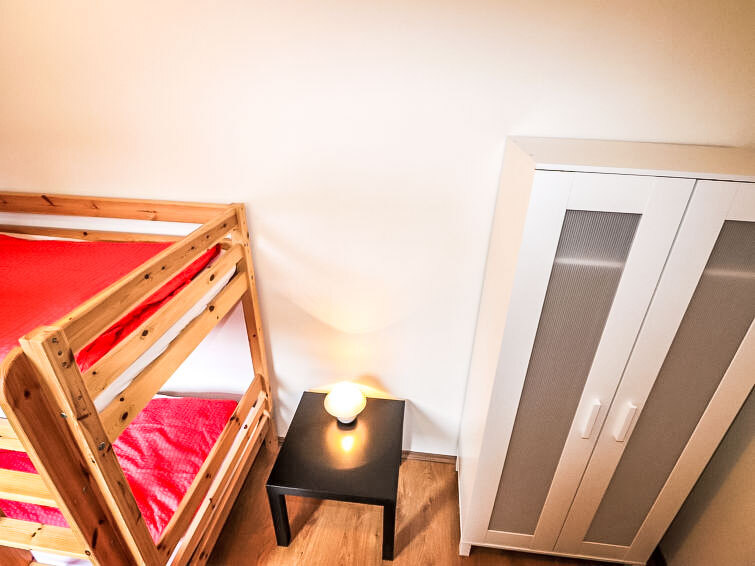 "Spatzennest / Top 7", appartement 5-kamers 82 m2 op de 1e verdieping. Het objekt is geschikt voor 4 volwassenen + 4 kinderen. Licht, gezellig ingericht: groot woon-/eetkamer met eettafel, kookhoek en Sat-TV. Uitgang naar het balkon. 1 2-pers. kamer. 1 kamer met 1 2-pers bed (160 cm, lengte 200 cm). Uitgang naar het balkon. 2 kinderkamers, elke kamer heeft 1 x 2 stapelbedden (80 cm, lengte 200 cm). Open keuken (4-pits kookplaat, oven, afwasmachine, magnetron, diepvriezer, elektrische koffiemachine). 2 douche/WC's. Groot balkon. Balkonmeubilair. Mooi uitzicht op de bergen en de plaats. Ter beschikking: Internet (Internet (WiFi), gratis). Niet rokers woning. Rookmelders, brandblusser, geen lift.