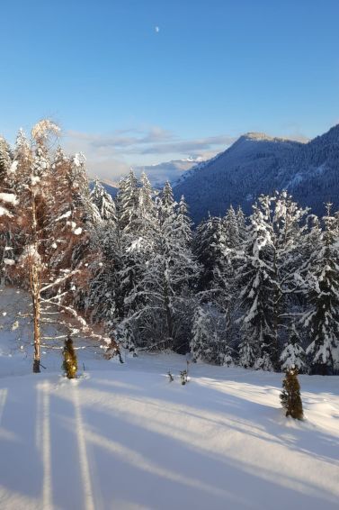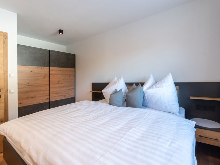 "Ferienwohnung Alpenauszeit", appartement 3-kamers 135 m2. Ruim en licht, smaakvol en gezellig ingericht: hal. 1 2-pers. kamer met douche/WC, Sat-TV, internationale TV-zenders en Flatscreen TV. Groot woonkeuken (oven, afwasmachine, 4 keramische glas kookplaten, broodrooster, waterkoker, magnetron, diepvriezer, elektrische koffiemachine) met eethoek, Sat-TV, internationale TV-zenders en Flatscreen TV. Aparte WC. Bovenverdieping: 1 2-pers. kamer met douche/WC, Sat-TV, internationale TV-zenders en Flatscreen TV. Houten vloeren, natuurstenen vloeren. Groot balkon. Balkonmeubilair. Zeer mooi panoramazicht op de bergen en het landschap. Ter beschikking: strijkijzer, kinderstoel, kinderbed tot 2 jaar, haardroger. Internet (Internet (WiFi), gratis). Rookvrij huis. Rookmelders, brandblusser. 50417-000481-2022