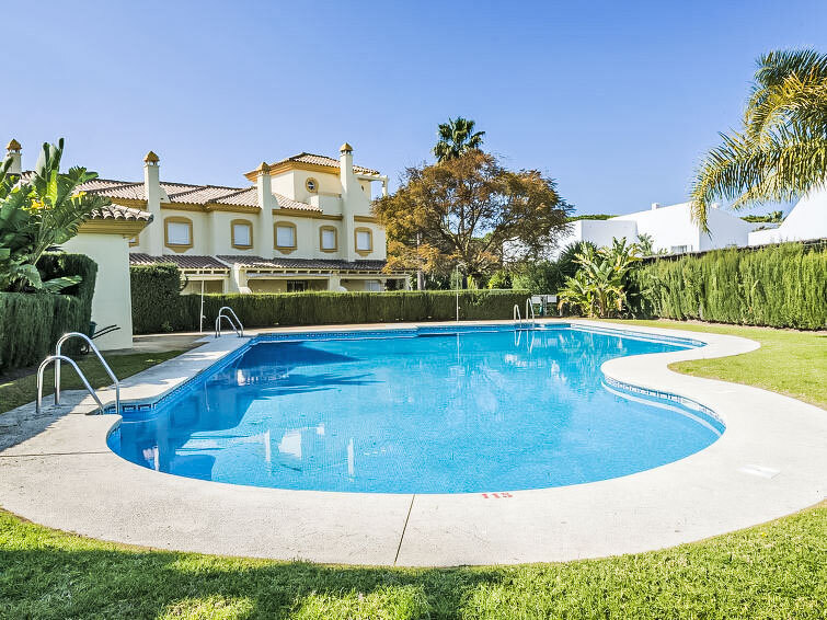 Novo Sancti-Petri: Onderdeel van de luxueus opgezette urbanisatie "Novo Sancti-Petri" (122.000 m2) en gelegen nabij de fameuze golfclub "Novo Sancti-Petri" met 27 holes en brede wegen rijtjeshuis "Brisamar - Novo Sancti Petri". 4 km van het centrum van Chiclana, 1 km van zee. Voor medegebruik: tuin met gazon, openluchtzwembad (15 x 7 m, 80 - 270 cm diepte, seizoensgebonden beschikbaarheid: 15.Jun. - 15.Sep.). Buitendouche. Winkelcentrum 1 km, bushalte 190 m, treinstation 40 km, zandstrand 1 km. Golfterrein (18 holes) 2.5 km, manege 300 m. Het complex wordt s´nachts bewaakt. Fietspaden in de gehele urbanisatie.