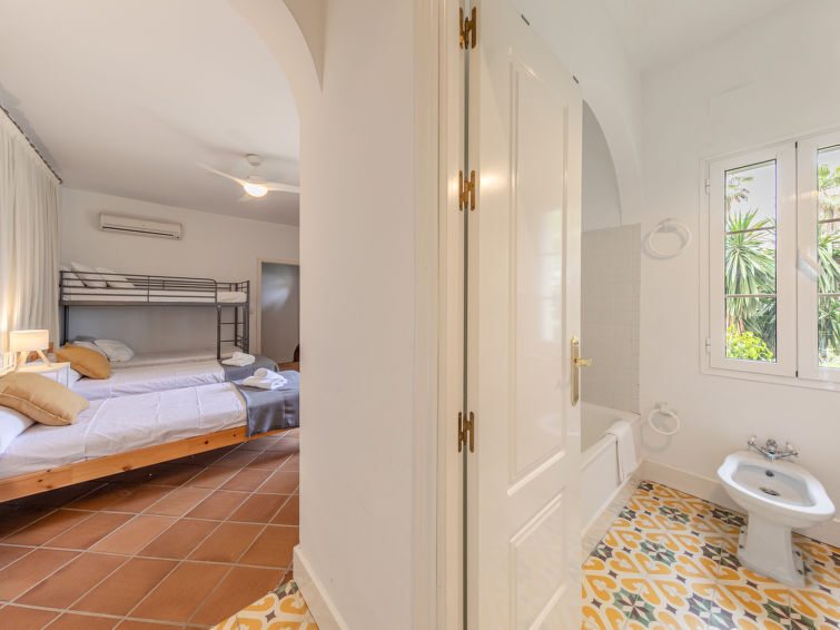 "Las Codornices", villa 11-kamers 500 m2 op 3 verdiepingen. Doelmatig en comfortabel ingericht: groot woon-/eetkamer met open haard, Digitale TV, Flatscreen TV, radio, CD-speler en DVD. 2 kamers, elke kamer heeft 1 2-pers bed (150 cm, lengte 190 cm), bad/WC. 2 kamers, elke kamer heeft 2 bedden (90 cm, lengte 190 cm). 1 kamer met 1 bed (90 cm, lengte 190 cm). Groot keuken (oven, afwasmachine, 4 keramische glas kookplaten, broodrooster, waterkoker, magnetron, diepvriezer, elektrische koffiemachine). Douche/WC. Bovenverdieping: 1 kamer met 1 2-pers bed (150 cm, lengte 190 cm). 1 kamer met 2 bedden (90 cm, lengte 190 cm), 1 x 2 stapelbedden (90 cm, lengte 190 cm). Bad/WC. 2e Verdieping: Erker. 3e Verdieping: groot woonkamer met bibliotheek, Digitale TV en Flatscreen TV. Keuken (oven, afwasmachine, 4 keramische glas kookplaten, waterkoker, magnetron, diepvriezer, elektrische koffiemachine). Bad/bidet/WC. Vloerverwarming. Zolderverdieping: 1 kamer met 1 2-pers bed (150 cm, lengte 190 cm). 1 kamer met 2 bedden (90 cm, lengte 200 cm), 1 2-pers divanbed. Bad/bidet/WC. Air-conditioning, heteluchtverwarming. Tuin. Barbecue, ligstoelen. Ter beschikking: wasmachine, strijkijzer, kinderstoel, kinderbed tot 2 jaar, haardroger. Internet (WiFi, gratis). Geschikt voor families. Rookvrij huis. Maximaal 1 huisdier/hond toegestaan. Geen interne verbinding tussen de aparte wooneenheden. VTAR/SE/00682