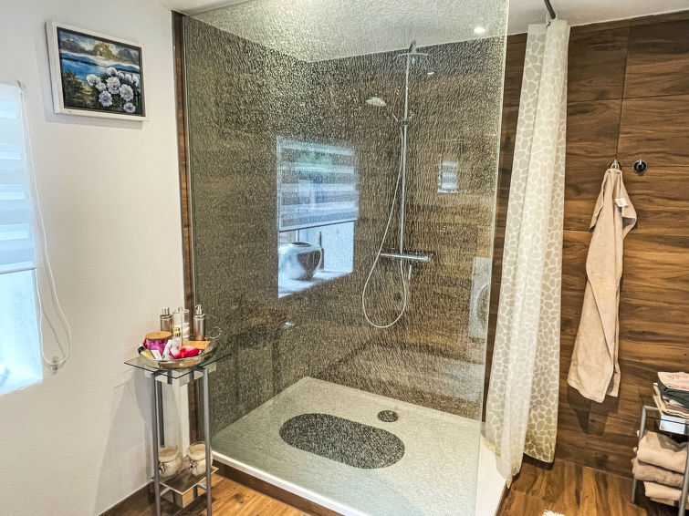 Huis 3-kamers 126 m2 op 2 verdiepingen. Comfortabel ingericht: woon-/slaapkamer met 1 2-pers divanbed (160 cm, lengte 200 cm), zwedenkachel en Sat-TV (Flatscreen TV). Uitgang naar het terras. 1 kamer met 1 2-pers bed en verwarming. Keuken (afwasmachine, 4 keramische glas kookplaten, broodrooster, waterkoker, elektrische koffiemachine) met verwarming. Aparte WC. Bovenverdieping: (steile trap), 1 kamer met 1 2-pers bed, air-conditioning en heteluchtverwarming. Douche/WC. Groot terras. Terrasmeubelen. Mooi uitzicht op het landschap. Ter beschikking: wasmachine. Internet (WiFi, gratis). Parkeerplaats (2 Auto's) bij het huis. Rookvrij huis. Rookmelders.