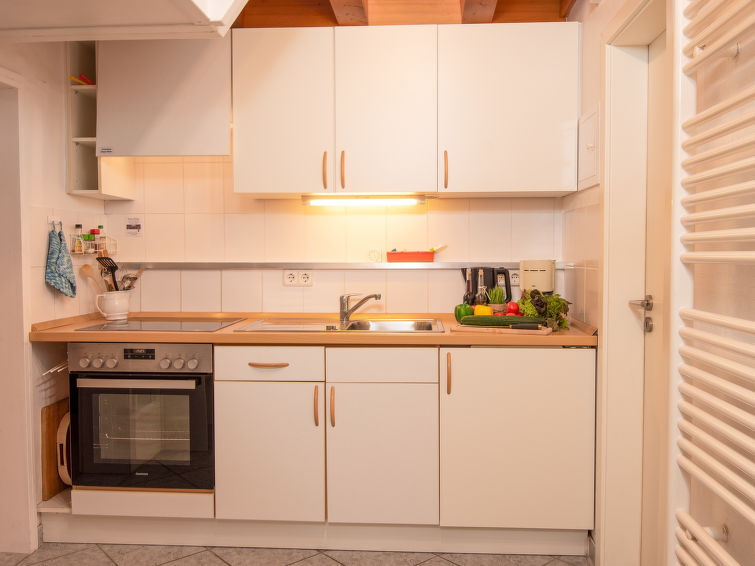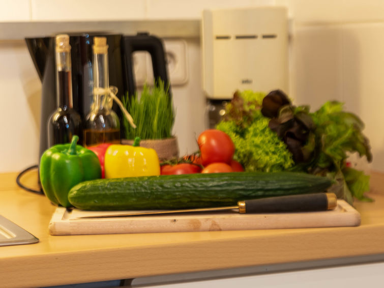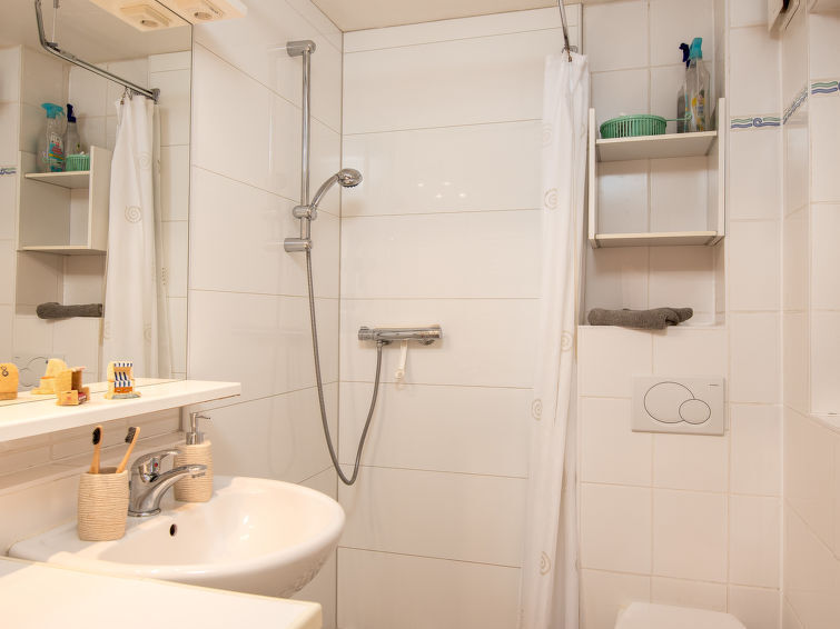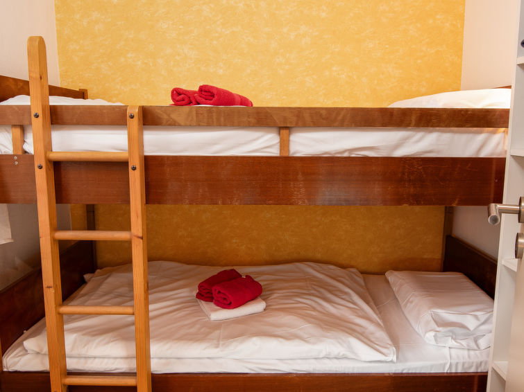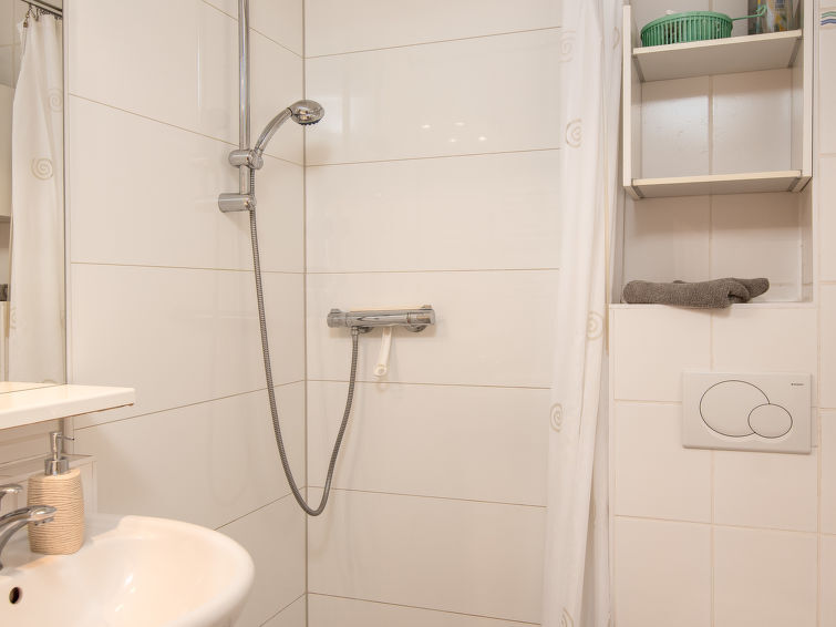 Huis 3-kamers 32 m2 op 2 verdiepingen, op de begane grond. Het objekt is geschikt voor 2 volwassenen + 2 kinderen. Gezellig ingericht: woon-/eetkamer 10 m2 met Sat-TV (Flatscreen TV), radio en CD-speler. Uitgang naar het terras. 1 kleine kamer 4 m2 met 1 x 2 stapelbedden (90 cm, lengte 190 cm). Keuken (4-pits kookplaat, oven, broodrooster, waterkoker, magnetron, elektrische koffiemachine). Douche/WC. Zolderverdieping: (steile trap), 1 open kamer 5 m2, met afgeschuinde daken met 2 bedden (90 cm, lengte 190 cm). Terrasmeubelen. Mooi uitzicht op de tuin. Ter beschikking: wasmachine, kinderstoel (extra). Koelkast zonder vriesvak, rookvrij huis. Rookmelders.