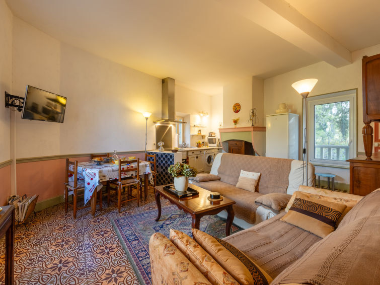 "La Pinède", huis in een rij 2-kamers 47 m2. Het objekt is geschikt voor 2 volwassenen. Zeer comfortabel ingericht: woon-/eetkamer met eettafel en TV (Flatscreen TV), stereo-installatie en air-conditioning. 1 kamer met 1 2-pers bed (1 x 140 cm, lengte 190 cm), air-conditioning. Uitgang naar het terras. Open keuken (oven, 3 inductiekookplaten, broodrooster, waterkoker, magnetron, diepvriezer, elektrische koffiemachine). Douche, aparte WC. Elektrische verwarming. Klein terras 20 m2, groot tuin 100 m2. Balkonmeubilair, elektrische barbecue, ligstoelen (2). Mooi uitzicht op het landschap. Ter beschikking: wasmachine, kinderstoel, kinderbed. Internet (Internet (WiFi), gratis). Parkeerplaats. Rookvrij huis. Rookmelders. Aanbod door een particulier volgens art. 155, IV van CGI.