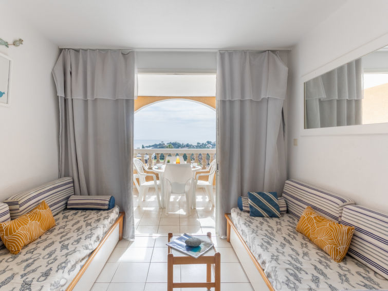 Groot vakantiecomplex "Village Cap Estérel - Le Village". Aan de rand van de plaats, 2 km van het centrum van Agay, tegen een helling, in een woonwijk, 900 m van zee, 900 m van het strand, de straat oversteken, aan de golfbaan, in een voetgangerszone. Voor medegebruik: park 210 ha, 5 zwembaden (seizoensgebonden beschikbaarheid: 06.Apr. - 03.Nov.). Kinderzwembad, jeu de boules, kinderspeelplaats (glijbaan, schommel). In het complex: spa centrum (extra), winkel, wasserette (extra). Winkel 500 m, levensmiddelenwinkel, supermarkt 6 km, restaurant 500 m, bakkerij, bushalte "Ligne 21" 300 m, treinstation "Saint-Raphaël-Valescure TGV" 9 km, zandstrand "Tiki Plage" 900 m. Jachthaven 1 km, golfterrein (9 holes), tennis 500 m. Attracties in de buurt: Anthéor 8 km, Saint-Raphaël 9 km, Fréjus 13 km, Cannes 33 km, Saint-Tropez 50 km, Nice 76 km. Bekende meren kunnen gemakkelijk worden bereikt: Lac Saint-Cassien. Wandelgebied Massif de l'Estérel. Autovrij vakantiepark, geen lift. Animatie in het hoogseizoen. Geschikt voor families, kinderopvang mogelijk in het hoogseizoen (extra). Bewaakt vakantiecomplex. Vergelijkbare accommodaties kunnen worden geboekt.