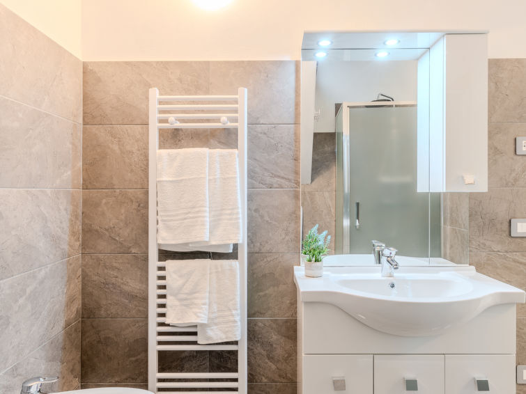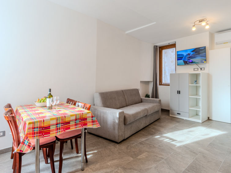 Appartement 2-kamers 40 m2, op verhoogde begane grond. Comfortabel en smaakvol ingericht: open woon-/slaapkamer met 1 2-pers divanbed (160 cm, lengte 190 cm), TV (Flatscreen TV). 1 kamer met 2 bedden. Open keuken (4 inductiekookplaten, broodrooster, waterkoker, diepvriezer, elektrische koffiemachine, combimagnetron) met eettafel. Douche/bidet/WC. Air-conditioning, vloerverwarming. Verwarming alleen beschikbaar van 15.10. tot 30.04. Natuurstenen vloeren. Ter beschikking: haardroger. Internet (WiFi, gratis). Niet rokers woning. Privé ingang, rookmelders, brandblusser. IT013252C2JSE08ZJR