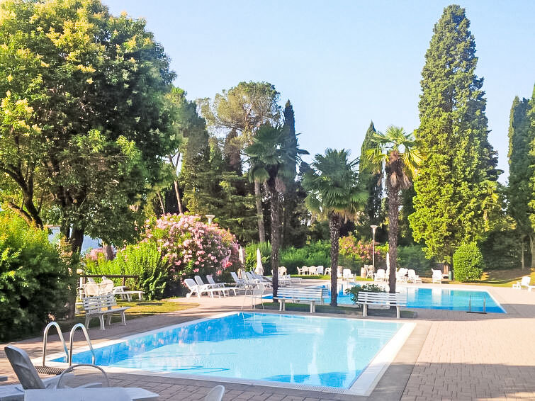 Appartement 4-kamers 130 m2 op 2 verdiepingen op de 5e verdieping. Doelmatig en gezellig ingericht: woon-/eetkamer met Sat-TV en radio. Uitgang naar het balkon. 1 2-pers. kamer. Keuken (4-pits kookplaat, oven, afwasmachine, magnetron, elektrische koffiemachine). Bad/bidet/WC. Bovenverdieping: 1 kamer met 2 x 2 stapelbedden. 1 kamer met 2 bedden. Bad/bidet/WC. Geen verwarmingsmogelijkheid. Balkon 6 m2. Zeer mooi uitzicht op het meer. Ter beschikking: wasmachine. Internet (WiFi, gratis). Niet geschikt voor kleine kinderen. Zwembad, speelgedeelte en tennisbanen op ca. 200 m afstand van het appartement (straat oversteken). IT103049C2A54PSKPH