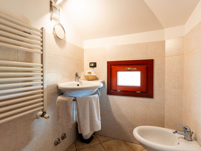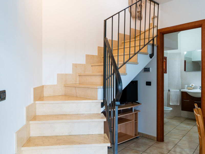"Rosmarino", appartement 2-kamers 70 m2 op 2 verdiepingen, op de begane grond. Doelmatig en gezellig ingericht: woon-/eetkamer met 1 2-pers divanbed (140 cm, lengte 200 cm). Uitgang naar het balkon. Kookhoek (oven, afwasmachine, 4 kookpitten (vlammen), broodrooster, waterkoker). Douche/bidet/WC. Bovenverdieping: 1 2-pers. kamer met afgeschuinde daken. Douche/bidet/WC. Air-conditioning. Verwarming alleen beschikbaar van 01.11. tot 15.04. Terras 20 m2. Terrasmeubelen. Uitzicht op het landschap. Ter beschikking: kinderbed tot 2 jaar, haardroger. Internet (WiFi, gratis). Parkeerplaats bij het huis. Maximaal 1 huisdier/hond toegestaan. Rookmelders, brandblusser. IT009006B4MY6VRM77
