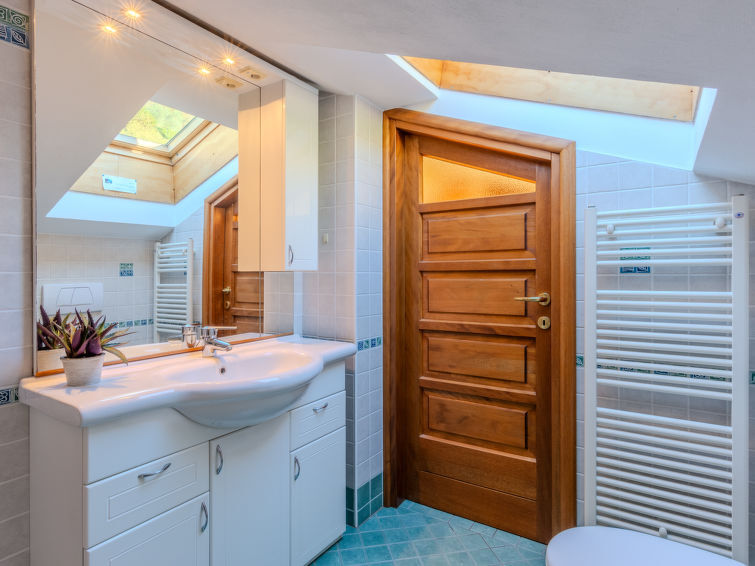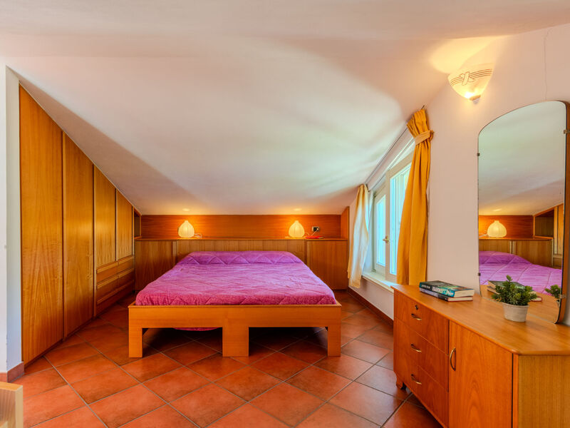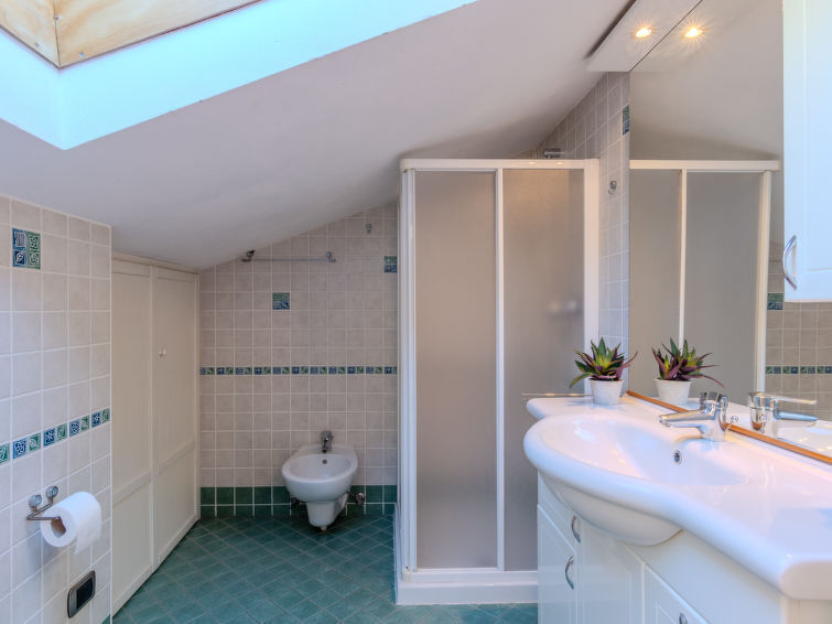 Halfvrijstaand huis 4-kamers 150 m2 op 3 verdiepingen. Ruim en licht, gedeeltelijk afgeschuinde daken, mooi en smaakvol ingericht: woon-/eetkamer met open haard (alleen decoratie), eettafel en Sat-TV (Flatscreen TV). Uitgang naar de tuin, naar het terras. 1 2-pers. kamer. Open keuken (oven, afwasmachine, Gasfornuis, 4 kookpitten (vlammen), broodrooster, waterkoker, magnetron, diepvriezer). Bad/bidet/WC. Bovenverdieping: 1 2-pers. kamer. Uitgang naar het balkon. 2e Verdieping: met afgeschuinde daken, Studio met 2 bedden, 1 2-pers bed en eettafel. Douche/bidet/WC. Gas-verwarming. Verwarming alleen beschikbaar van 15.10. tot 15.04. Natuurstenen vloeren. Balkon, groot terras overdekt, tuin. Terrasmeubelen, balkonmeubilair, ligstoelen (4). Mooi panoramazicht op het meer en de bergen. Ter beschikking: wasmachine, strijkijzer, kinderstoel, kinderbed tot 2 jaar. Internet (Internet (WiFi), gratis). Rookvrij huis. IT013189C2MAFXHAB5