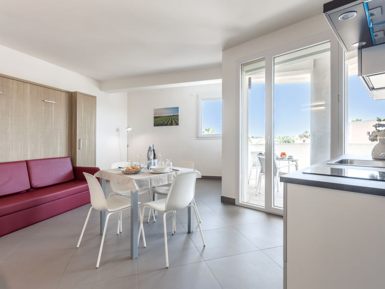 Aparthotel, bouwjaar 2019. 6 km van het centrum van Marsala, zonnige ligging, 1 km van zee. Voor medegebruik: terrein 2.000 m2 (omheind), tuin 50 m2, openluchtzwembad (6 x 14 m, 140 - 160 cm diepte, seizoensgebonden beschikbaarheid: 01.Mei. - 31.Okt.). Buitendouche, tuinmeubelen. In het complex: receptie, bar, ontbijtruimte, Internet (WiFi), lift, centrale verwarming, air-conditioning, wasserette. Dagelijks schoonmaak (incl.). Ontbijt op aanvraag (extra). Parkeerplaats op het terrein. Levensmiddelenwinkel 100 m, supermarkt 1 km, restaurant 500 m, bar 200 m, bushalte 5 km, zandstrand "Lido Signorino" 3.5 km. Attracties in de buurt: Marsala porto Aliscafi per Isole Egadi 5 km, Marsala Saline, Museo del Sale 14 km, Trapani 33 km, Erice 50 km, Tempio Segesta ed Area Archeologica 50 km, San Vito lo Capo 50 km. Auto noodzakelijk. Openingstijden van de receptie 09:00-18:00 uur. Gesloten residentie met een elektrische deur.