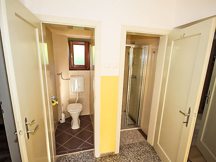 Huis 9-kamers 160 m2 op 3 verdiepingen. Gezellig ingericht: woonkamer met Sat-TV (Flatscreen TV). Eetkamer. Open keuken (oven, afwasmachine, 4 keramische glas kookplaten, magnetron, diepvriezer, elektrische koffiemachine). Bad/WC. Bovenverdieping: 3 2-pers. kamers, elke kamer heeft wastafel. Uitgang naar het balkon. 1 2-pers. kamer met wastafel. Douche, aparte WC. 2e Verdieping: 2 2-pers. kamers, elke kamer heeft wastafel. Woonkamer met afgeschuinde daken met Sat-TV (Flatscreen TV). Uitgang naar het balkon. Douche, aparte WC. Elektrische verwarming. Houten vloeren. Terras 15 m2. Terrasmeubelen, ligstoelen (4), bergruimte. Mooi panoramazicht op het meer en de bergen. Ter beschikking: wasmachine, kinderstoel, kinderbed, haardroger. Internet (WiFi, gratis). Rookvrij huis. Maximaal 2 huisdieren/honden toegestaan. Rookmelders.