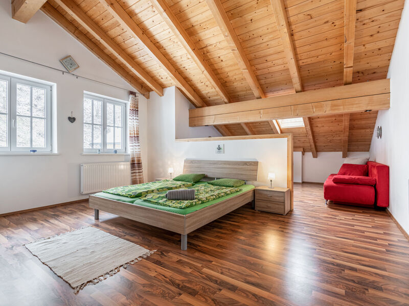"Grün", maisonette 2-kamers 70 m2 op de 1e verdieping. Ruim, met veel hout ingericht: woon-/eetkamer met eethoek en Sat-TV (Flatscreen TV). Uitgang naar het balkon. Open keuken (oven, afwasmachine, 4 keramische glas kookplaten, magnetron). Douche/WC. Bovenverdieping: 1 open groot kamer met 1 2-pers divanbed en 2 2-pers bedden. Uitzicht op het landschap. Ter beschikking: kinderstoel, kinderbed tot 3 jaar. Internet (Internet (WiFi), gratis). Niet rokers woning. Rookmelders. 50410-000116-2020