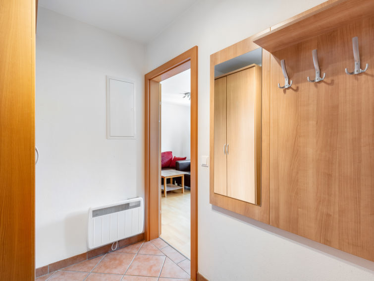 "Top 5", appartement 3-kamers 45 m2, op de begane grond. Comfortabel en gezellig ingericht: hal. Woon-/eetkamer met Sat-TV (Flatscreen TV). 1 2-pers. kamer. 1 kamer met 1 x 2 stapelbedden. Open keuken (oven, afwasmachine, 4 keramische glas kookplaten, diepvriezer, elektrische koffiemachine) met eettafel. Douche/WC. Parketvloeren. Terras. Balkonmeubilair. Mooi uitzicht op het landschap. Ter beschikking: Internet (WiFi, gratis). Parkeerplaats nr. 5. Niet rokers woning. Brandblusser. In de kamer zonder venster is lichtinval door een bovenraam naar een andere kamer. 50508-025013-2020